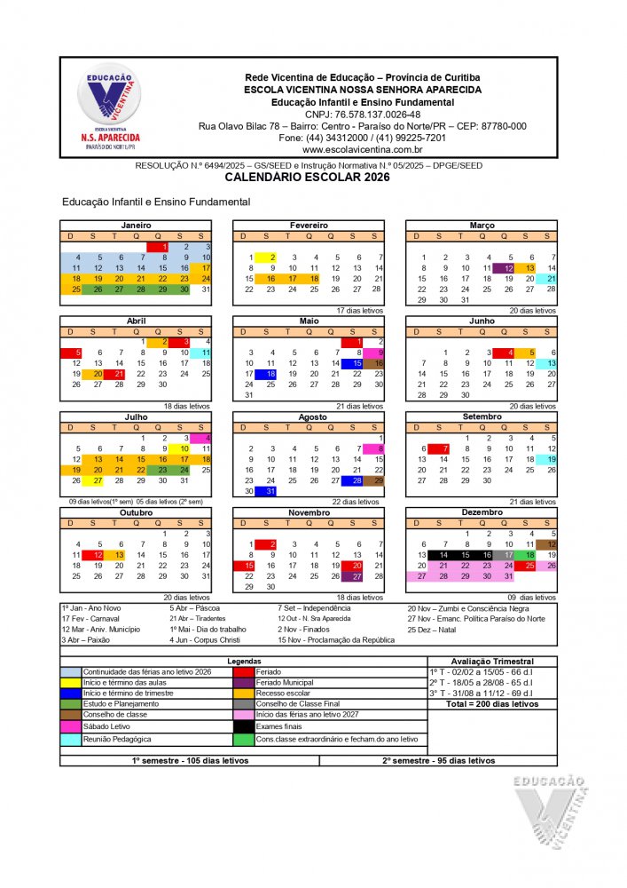 Calendário Escolar 2026